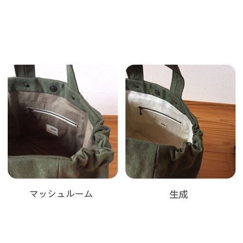表地に使用している帆布生地は、バイオウォッシュ加工が施されており、若干の色ムラがある場合がございます。できる限り目立つ個所は避けて製作していますが、こちらは生地の特性としてご理解くださいますよう、お願い申し上げます。