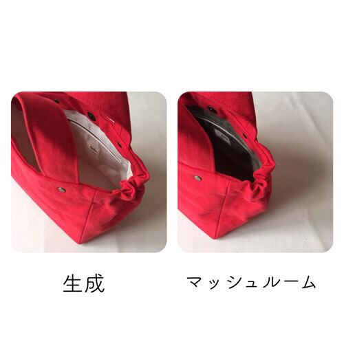 表地に使用している帆布生地は、バイオウォッシュ加工が施されており、若干の色ムラがある場合がございます。できる限り目立つ個所は避けて製作していますが、こちらは生地の特性としてご理解くださいますよう、お願い申し上げます。