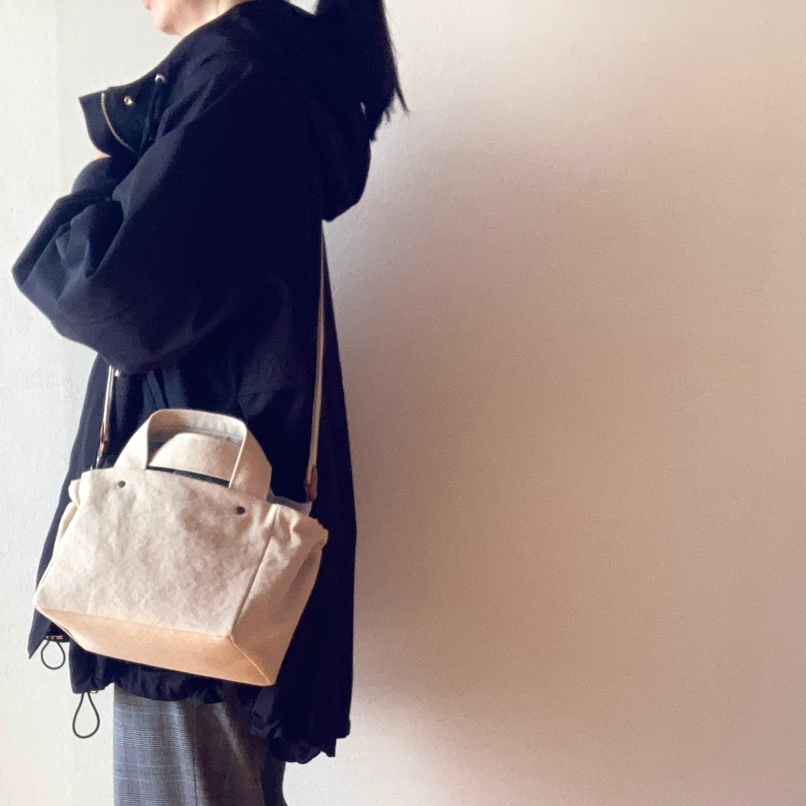 「ギャザートート:Mini」のシリーズに、オプションでショルダーストラップが付けられるようになりました。(写真1枚目、12枚目~18枚目)
