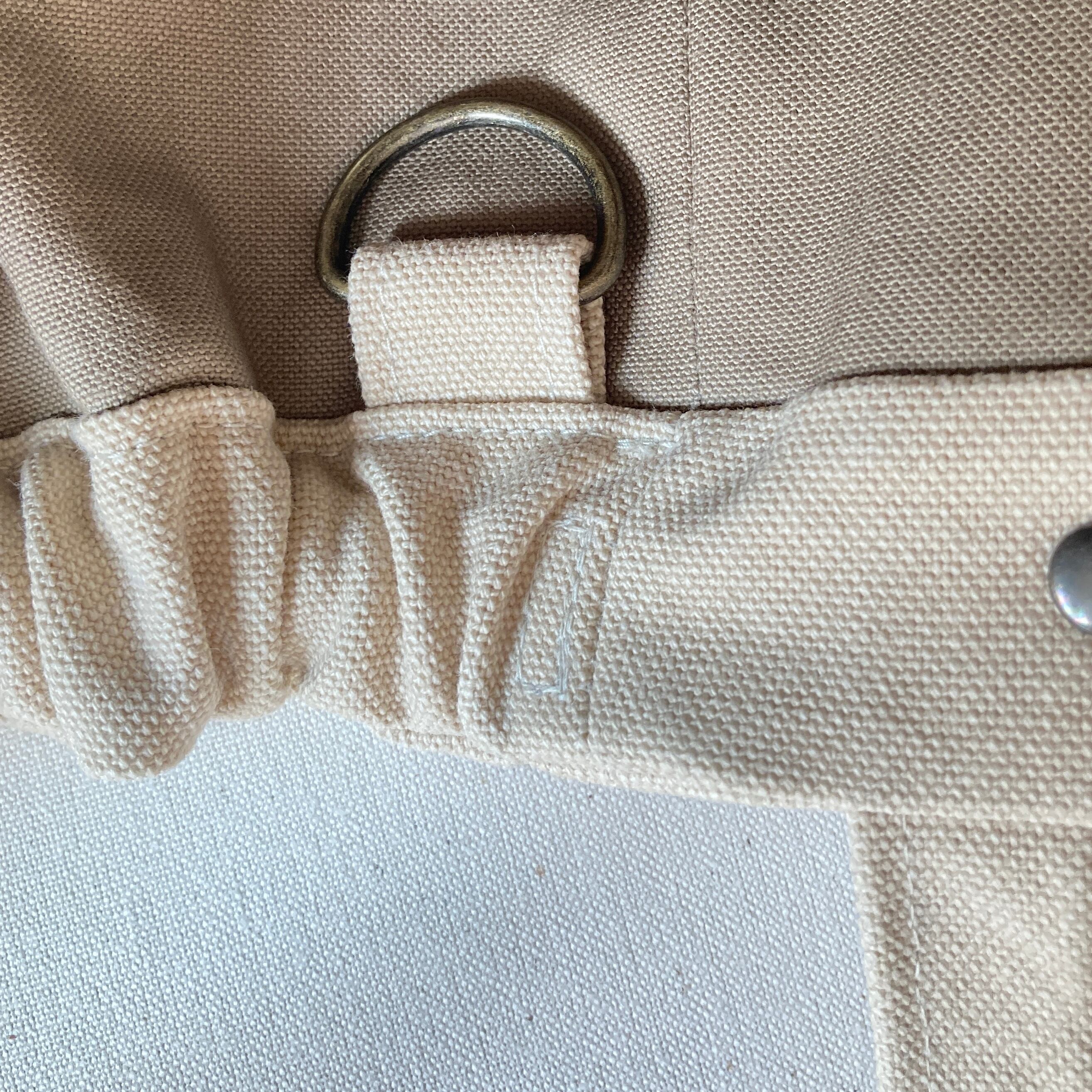 表地に使用している帆布生地は、バイオウォッシュ加工が施されており、若干の色ムラがある場合がございます。できる限り目立つ個所は避けて製作していますが、こちらは生地の特性としてご理解くださいますよう、お願い申し上げます。