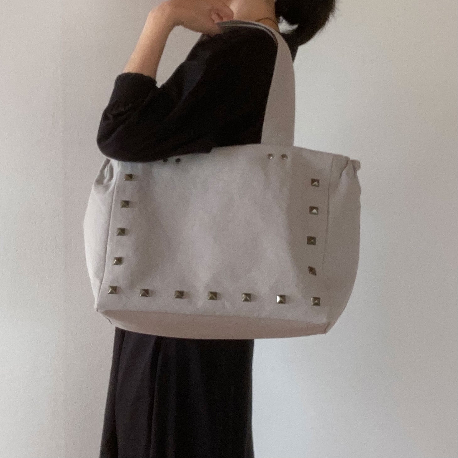 【受注製作】ギャザートート:Studs*Magazine(ライトグレー)