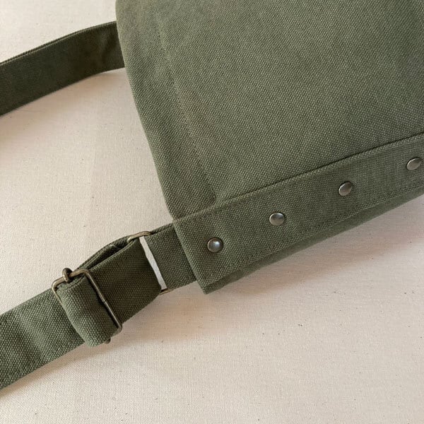 表地に使用している帆布生地は、バイオウォッシュ加工が施されており、若干の色ムラがある場合がございます。できる限り目立つ個所は避けて製作していますが、こちらは生地の特性としてご理解くださいますよう、お願い申し上げます。