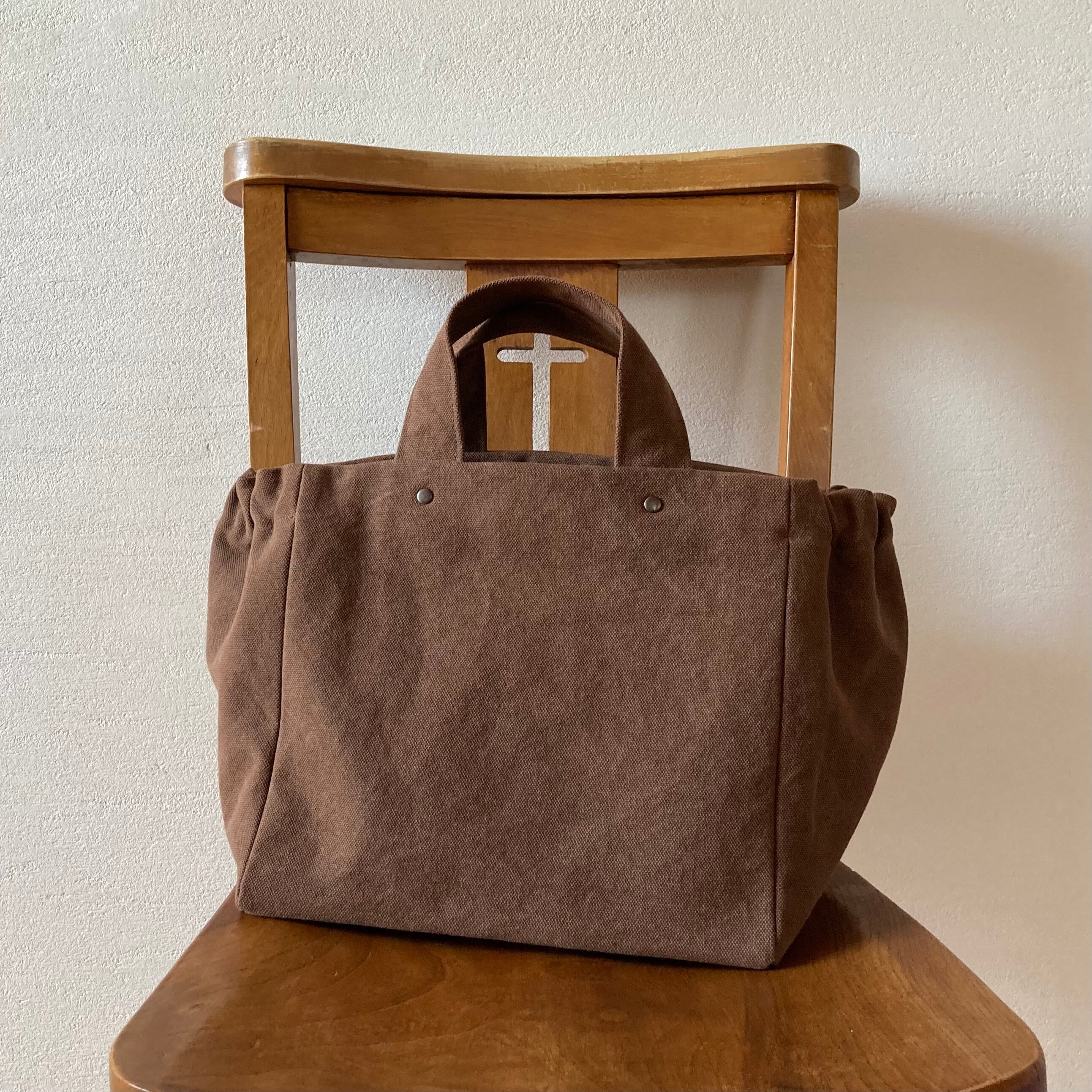 表地に使用している帆布生地は、バイオウォッシュ加工が施されており、若干の色ムラがある場合がございます。できる限り目立つ個所は避けて製作していますが、こちらは生地の特性としてご理解くださいますよう、お願い申し上げます。