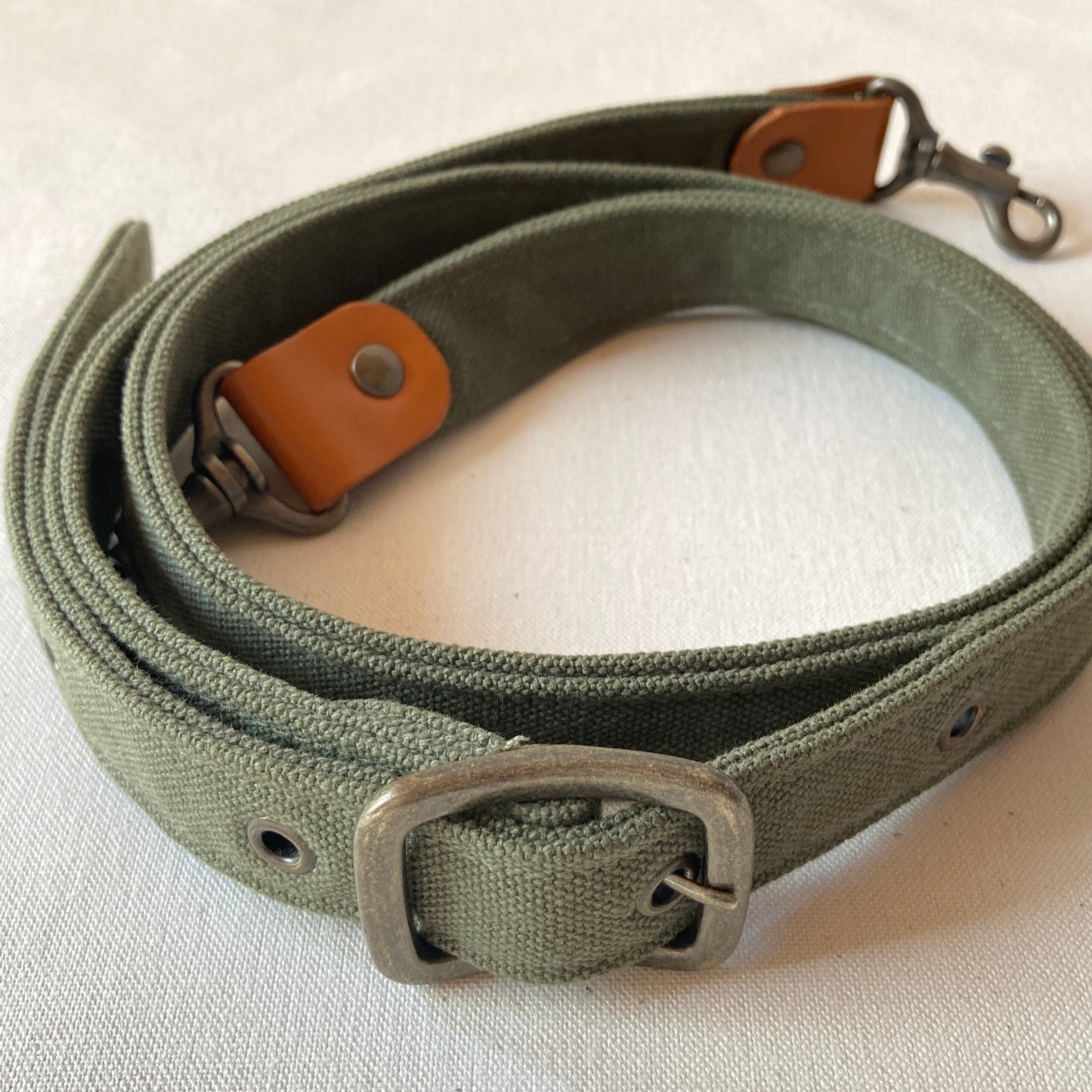 両端の革テープに取り付けられた「ナスカン」で取り外し可能。